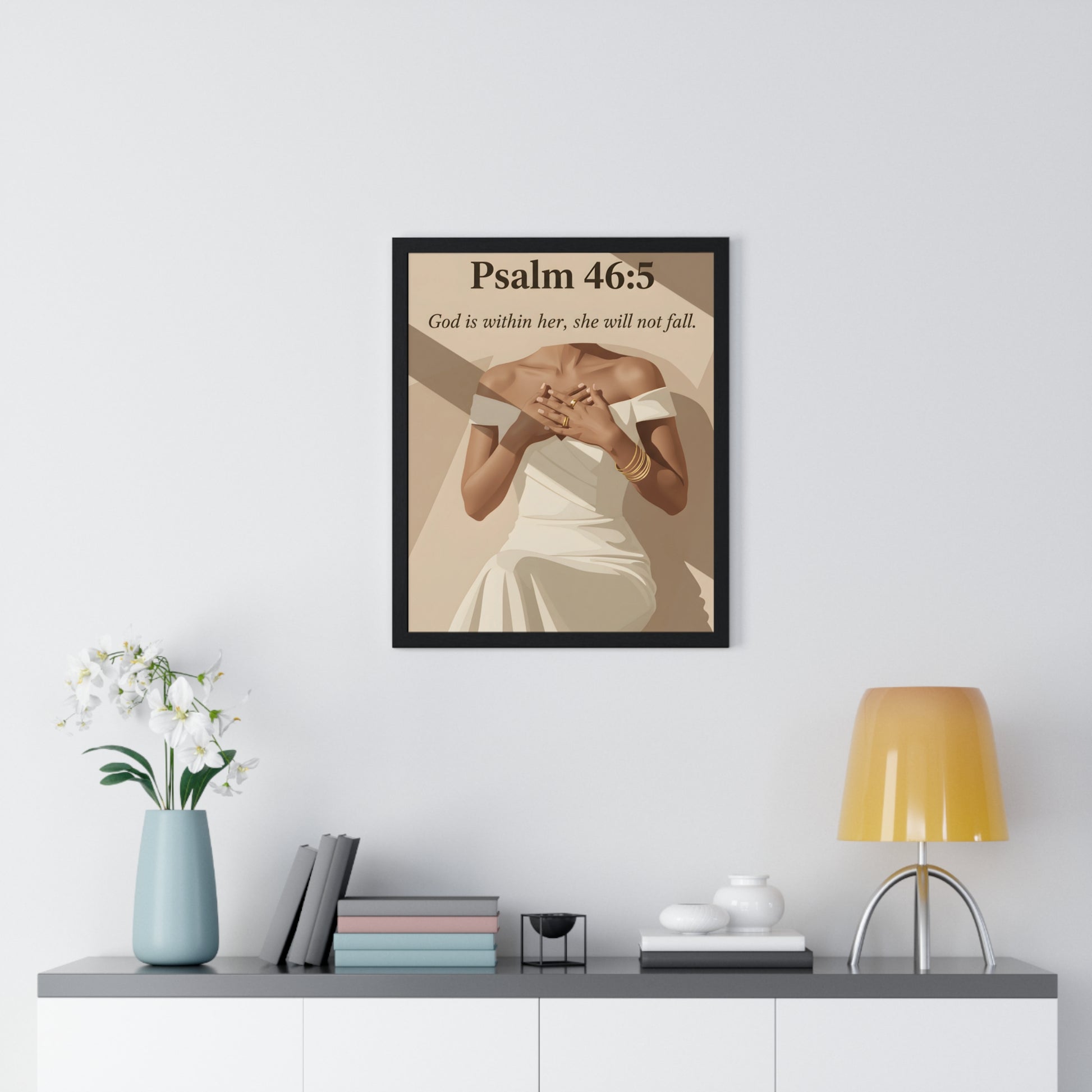 Empowering Vertical Framed Poster, Inspirational Home Decor, Psalm 46:5 Wall Art, Gift for Her, Motivational Artwork